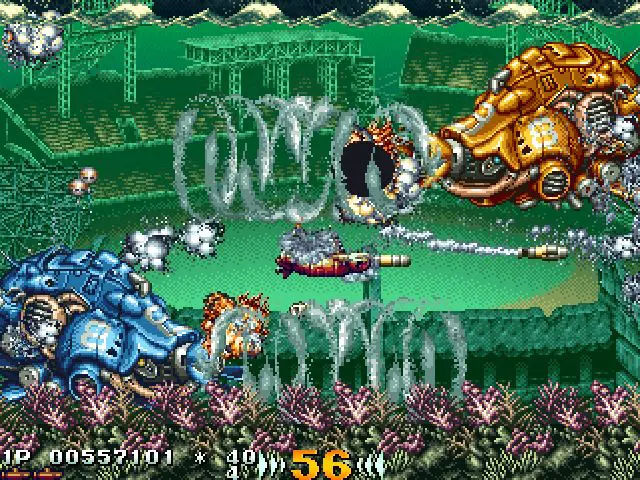 Visually, In the Hunt impresses with its gorgeous 2D shooting experience. Anyone familiar with Metal Slug will recognize the similar artistic style and exquisitely animated sprites, paired with vibrant and meticulously crafted backgrounds. The graphics alone make In the Hunt a standout title. However, the soundtrack is more hit-or-miss, with some tracks like “South Pole” for the first stage being catchy and well-composed, while others come across as uninspired, failing to capture the thrilling atmosphere of underwater combat. A surprising fact is that the composer for Metal Slug, known as “HIYA!”, was originally slated to score In the Hunt but was reassigned at the last minute to work on Image Fight II.In the Hunt undoubtedly brings a lot to the table, though it isn’t without its imperfections. The chief complaint is its punishing difficulty level, which can border on maddening. Some levels are seemingly designed to torment, with vertical-scrolling segments extending endlessly before a surprise attack from unseen adversaries. Its speedy projectiles and hordes of foes certainly put its toughness on par with the R-Type series. The game concludes quickly with a mere six stages, but each is quite extensive and time-consuming to complete. The sluggish pace of the player’s submarine, the Granvia, drew criticism from video game publications at the time, yet it isn’t a dealbreaker. Despite these issues, In the Hunt captivates with its enjoyable gameplay and originality and remains an underrated treasure, largely overlooked by arcade enthusiasts. Fans of the Metal Slug series are bound to appreciate In the Hunt as well. Released a year prior to Irem shutting down its video game sector to restructure in 1994, In the Hunt stands as one of the company’s final arcade offerings. Although not the ultimate shooter, it was a noteworthy finale for the creators of R-Type and Ninja Spirit.