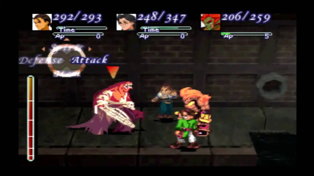 Xenogears does have a few minor flaws. For instance, the lack of a text speed option can become noticeable, especially during long-winded character dialogues. Additionally, the difficulty level is somewhat unbalanced, with certain bosses proving too challenging for some players. Dying in the game is generally uncommon due to the abundance of cheap items that fully restore health. Moreover, various status effects and attack types, such as Sonic and Gel attacks in Gears, are underutilized and rare. Despite these flaws, it’s challenging to heavily criticize Xenogears for these minor oversights. It stands as one of the best RPGs of 1998, one of the more exceptional console RPGs, and certainly a game worth investing in.